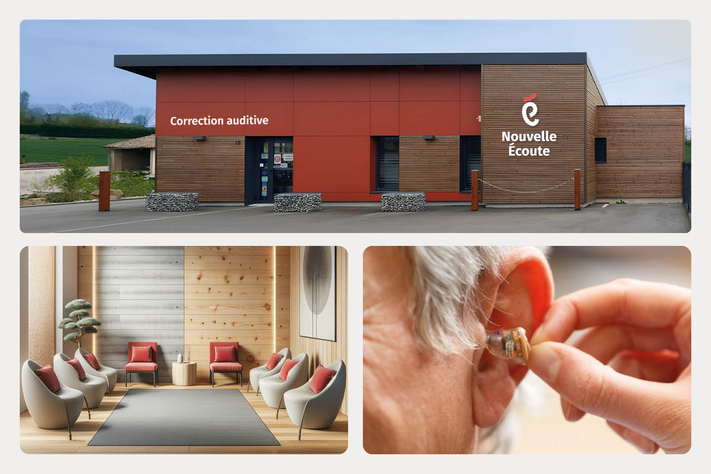 L’ensemble forme une identité visuelle cohérente et apaisante, en parfaite adéquation avec la mission de Nouvelle Écoute : proposer une expérience auditive rassurante, où la technologie de correction auditive se conjugue à une atmosphère zen et bienveillante.